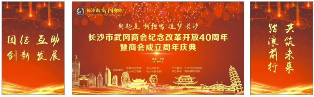 1月19日,长沙市武冈商会在好来登酒店多功能宴会厅隆重举行庆祝改革开放40周年暨商会成立壹周年庆典活动。